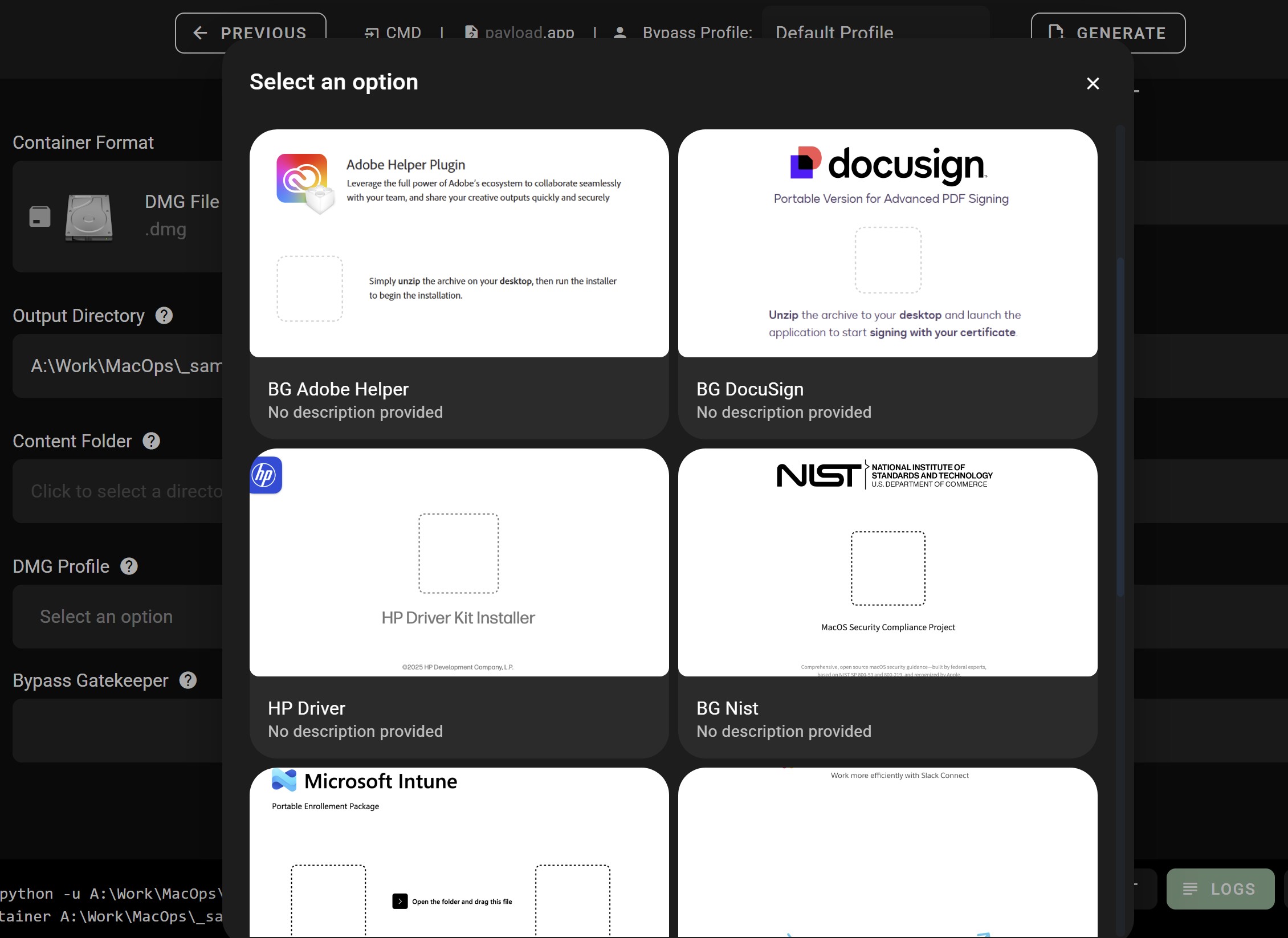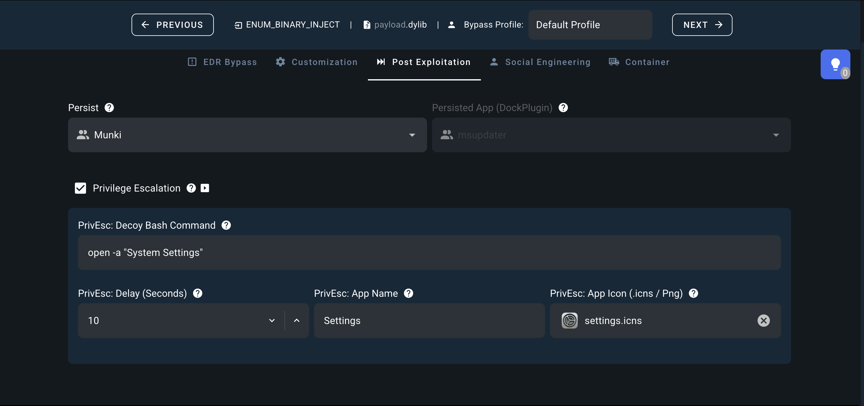 | Phishing | DMG phishing profiles with Gatekeeper bypass |