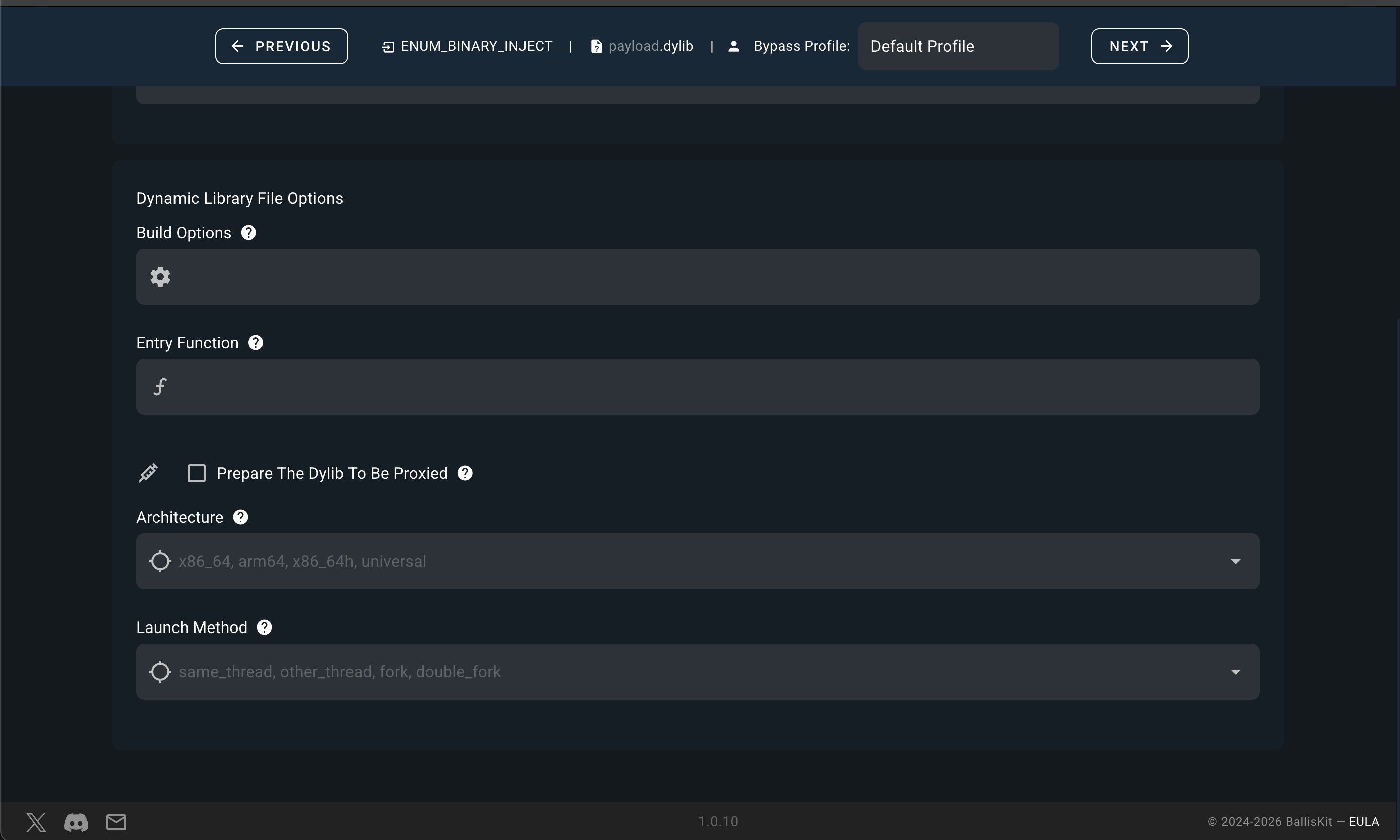 Each profile is tuned to the specific detection logic of the target EDR, not a generic bypass.